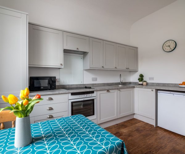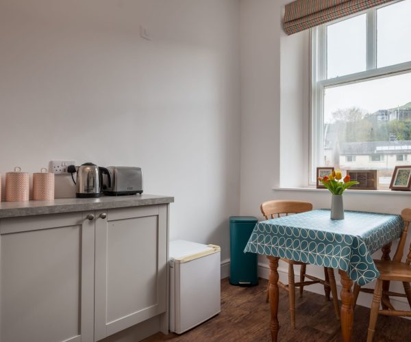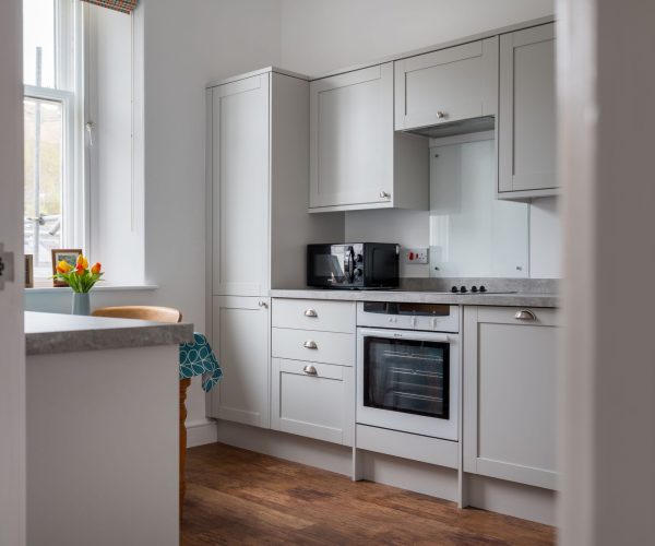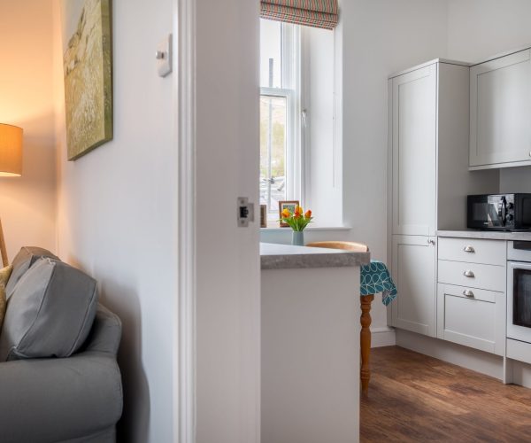 The apartment, sleeping 2, was refurbished in Spring 2024 and provides light, airy and modern accommodation, while blending with the traditional features of this Victorian style property. Dual aspect windows, high ceilings and carefully paired soft furnishings compliment the charm, with those stunning views being the ‘pièce de résistance’!