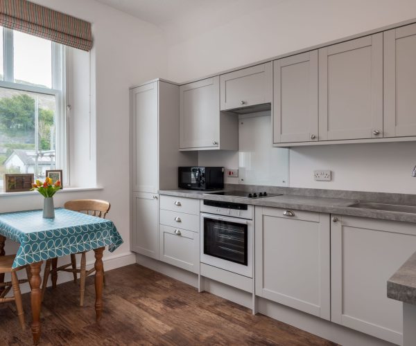 Once inside Wansfell Heights, the living areas are made up of a spacious lounge – with plenty of comfortable seating to cosy down on after a day of exploring – and a newly fitted dining kitchen, with all the necessities for self-catering.